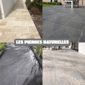 Pour une terrasse de caractère, la pierre naturelle est un choix haut de gamme et durable. Elle donne un rendu unique grâce à ses nuances naturelles et sa solidité incomparable